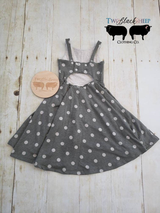 6-9y GWM Heathered Olive Green and Polka dot Summer Dress