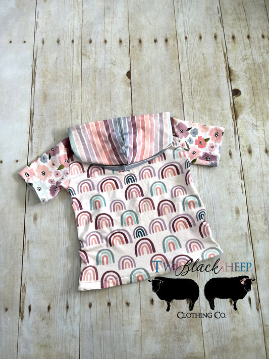 Size 5 Pink Pastel Rainbow Hooded Tee