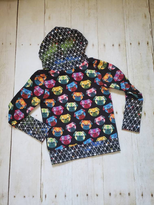 6-9 years Geometric Rainbow Pug Life Grow with Me Hoodie